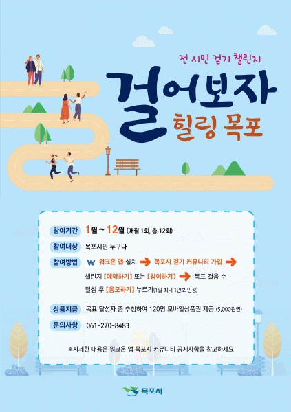 [¹Ìµð¾îÀü³² °í±Ô¼® ±âÀÚ] ¸ñÆ÷½Ã º¸°Ç¼Ò°¡ ½Ã¹ÎÀÇ °Ç°ÁõÁø ¹× °Ç°»ýȰ Çâ»óÀ» À§ÇØ 1¿ùºÎÅÍ 12¿ù±îÁö ¿öÅ©¿Â ¾ÛÀ» Ȱ¿ëÇÑ ¡®Àü ½Ã¹Î °È±â 縰Áö¡¯¸¦ ¿î¿µÇÑ´Ù. ¿öÅ©¿ÂÀº °È±â Ȱ¼ºÈ ¸ð¹ÙÀÏ ¾ÛÀ¸·Î ¸ñÆ÷½Ã¹ÎÀÌ¸é ´©±¸³ª Âü¿© °¡´ÉÇÏ¡¦