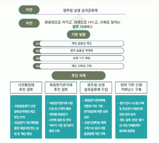 [¹Ìµð¾îÀü³² Á¦°¥´ëÁ¾ ±âÀÚ]±¤ÁÖ ½Ã³»¹ö½º Áذø¿µÁ¦ÀÇ ÇØ¹ýÀ¸·Î ¿¹»êÀ» Àý°¨ÇÏ¸é ±× ÇýÅÃÀ» ½Ã¹Î°ú ¹ö½º¾÷ü, ¿î¼öÁ¾»çÀÚ°¡ ÇÔ²² ³ª´©´Â ¡®±¤ÁÖÇü »ó»ý ¼º°ú°øÀ¯Á¦¡¯°¡ Á¦½ÃµÅ ÁÖ¸ñµÈ´Ù. ±¤ÁÖ±¤¿ª½ÃÀÇȸ´Â 11ÀÏ ¹ÚÇʼø(´õºÒ¾î¹ÎÁÖ´ç, ±¤¡¦