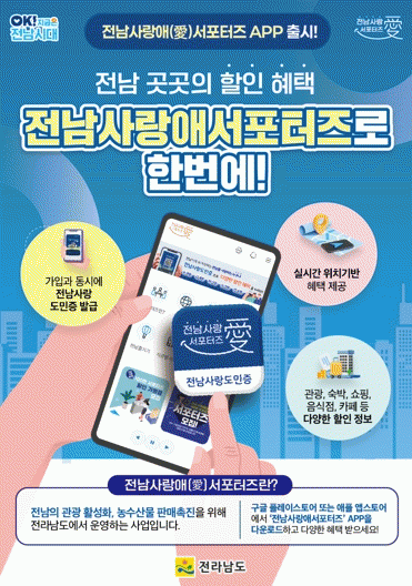 [¹Ìµð¾îÀü³² Á¦°¥´ëÁ¾ ±âÀÚ]Àü¶ó³²µµ°¡ Àü³² »ç¶û¾Ö(äñ) ¼Æ÷ÅÍÁî¿ÍÀÇ ¼ÒÅëÀ» °ÈÇϰí ÀÌ¿ë ÆíÀǸ¦ ȹ±âÀûÀ¸·Î ³ôÀ̱â À§ÇØ ÅëÇÕ Ç÷§ÆûÀÎ ¡®Àü³² »ç¶û¾Ö ¼Æ÷ÅÍÁî ¾Û¡¯À» Ãâ½ÃÇß´Ù. ±×µ¿¾È Àü³²µµ´Â »ýȰÀα¸ È®º¸¿Í °ü±¤ ¼Òºñ Áõ´ë¸¦¡¦