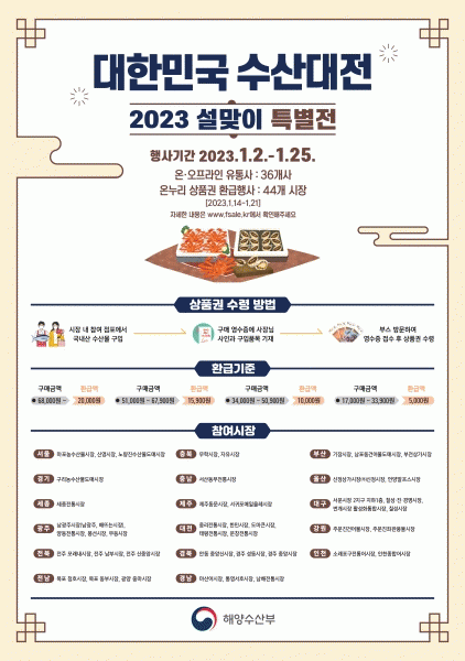 [¹Ìµð¾îÀü³² °í±Ô¼® ±âÀÚ] ûȣ½ÃÀå°ú µ¿ºÎ½ÃÀåÀÌ ¼³ ¸íÀýÀ» ¸Â¾Æ ¿À´Â 14~21ÀÏ ¡®¿Â´©¸®»óǰ±Ç ȯ±Þ¡¯ ÇÒÀÎÇà»ç¸¦ ½Ç½ÃÇÑ´Ù. À̹ø Çà»ç´Â ¸ñÆ÷½Ã¿Í ÇØ¾ç¼ö»êºÎ¡¤³ó¸²Ãà»ê½ÄǰºÎ°¡ ¼³¸ÂÀÌ Á¦¼ö¿ëǰ ±¸ÀÔ¿¡ µû¸¥ ¼ÒºñÀÚÀÇ ºÎ´ãÀ» ´õ´Â ÇÑ¡¦