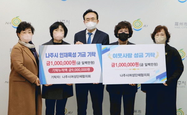 [¹Ìµð¾îÀü³² ¹Úº¹»ê ±âÀÚ] ³ªÁֽô 9ÀÏ ³ªÁֽÿ©¼º´ÜüÇùÀÇȸ¿¡¼ À۳⿡ ÀÌ¾î °Ü¿ïö ÀÌ¿ôµ½±â ¼º±Ý 100¸¸¿ø°ú ³ªÁÖ±³À°ÁøÈïÀç´Ü ÀÎÀçÀ°¼º±â±Ý 100¸¸¿øÀ» °¢°¢ ±âŹÇß´Ù°í ¹àÇû´Ù. ½Ãû»ç ½ÃÀå½Ç¿¡¼ ¿¸° ±âŹ½Ä¿¡´Â À±º´Å ½ÃÀå, °¡¦