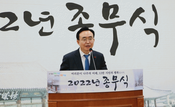 [¹Ìµð¾îÀü³² ¹Úº¹»ê ±âÀÚ] Àü¶ó³²µµ ³ªÁֽð¡ 30ÀÏ ½Ãû»ç ´ëȸÀǽǿ¡¼ 2022³â Á¾¹«½ÄÀ» °®°í 2023³â ¡®20¸¸ ±Û·Î¹ú °¼Òµµ½Ã ³ªÁÖ ¿ø³â¡¯ ½ÇÇöÀ» ´ÙÁüÇß´Ù. Á¾¹«½ÄÀº À¯°ø ǥ⠽ûó, 2022³â ½ÃÁ¤ ¼º°ú ¹× 2023³â ½ÃÁ¤¿î¿µ ¹æÇâ ¿µ»ó¡¦