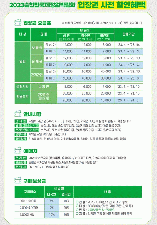[¹Ìµð¾îÀü³² ÀÓ¼º¿Ï ±âÀÚ] ¼øÃµ¸¸±¹Á¦Á¤¿ø¹Ú¶÷ȸÁ¶Á÷À§¿øÈ¸´Â 4¿ù 1ÀÏ 2023¼øÃµ¸¸±¹Á¦Á¤¿ø¹Ú¶÷ȸ °³¸·À» ¾ÕµÎ°í 3¿ù ¸»±îÁö ½Å³â ÀÔÀå±Ç ¿¹¸Å ÇÒÀÎÀ» ½Ç½ÃÇÑ´Ù. 2023¼øÃµ¸¸±¹Á¦Á¤¿ø¹Ú¶÷ȸ ¿¹¸Å ÀÔÀå±ÇÀº ¹Ú¶÷ȸ ´çÀÏ ÀÔÀåÀÌ °¡´ÉÇÑ ¡®º¸¡¦