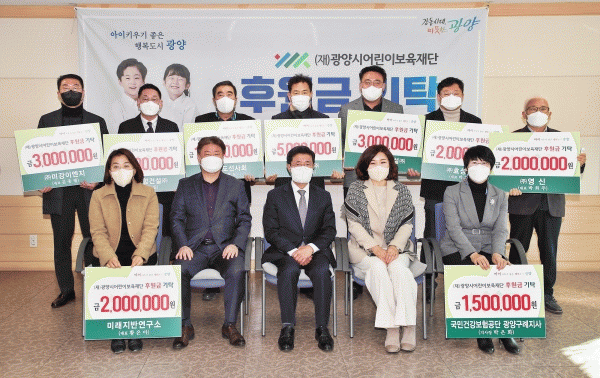 [¹Ìµð¾îÀü³² ÀÓ¼º¿Ï ±âÀÚ] ±¤¾ç½Ã¾î¸°À̺¸À°Àç´ÜÀº Áö³ 29ÀÏ Á¤ÀÎÈ ±¤¾ç½ÃÀå, À̱¤¿ë ÀÌ»çÀå, ±â¾÷ü¡¤±â°ü °ü°èÀÚ µîÀÌ Âü¼®ÇÑ °¡¿îµ¥ 3,350¸¸¿øÀÇ ÈÄ¿ø±Ý ±âʽÄÀ» °¡Á³´Ù. À̹ø¿¡ ±âŹµÈ ±â±ÝÀº ¿©¼öÇ×µµ¼±»çȸ 1õ¸¸¿ø, ȿâ°Ç¼³¡¦