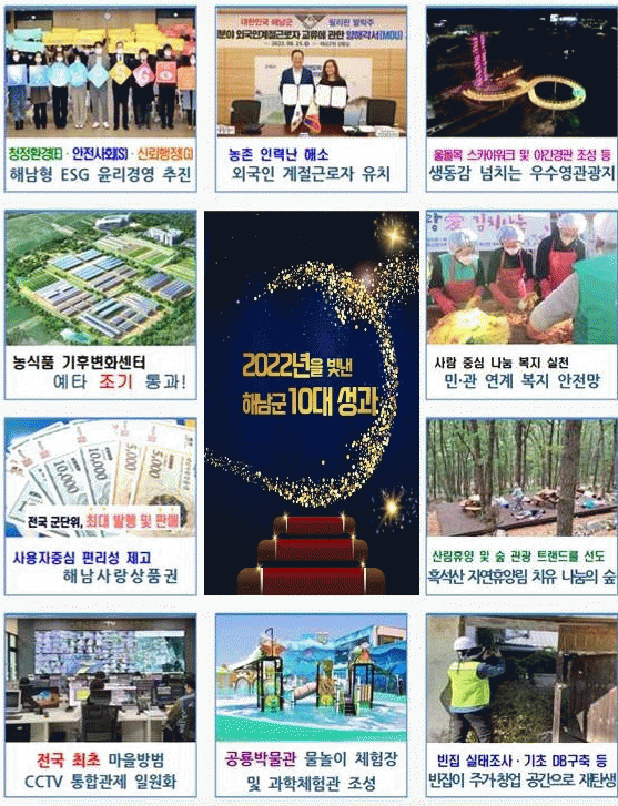 [¹Ìµð¾îÀü³² À±º¸Çö ±âÀÚ] ÇØ³²±ºÀÌ ÇØ³²Çü ESG À±¸®°æ¿µ È®»ê µî 2022³â ÇØ³²À» ºû³½ 10´ë ¼º°ú¸¦ ¼±Á¤Çß´Ù. ÇØ³²±º 10´ë ¼º°ú´Â ¿ÃÇØ ¿ì¼öÇÏ°Ô ÃßÁøµÈ ±ºÁ¤½ÃÃ¥¿¡ ´ëÇØ Á÷¿ø¡¤±º¹Î ¼³¹®Á¶»ç¸¦ ½Ç½Ã, ÃÖÁ¾ 10°ÇÀÇ ½ÃÃ¥ÀÌ ¼±Á¤µÆ´Ù. ¡¦