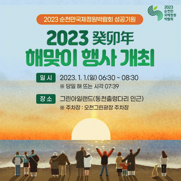 [¹Ìµð¾îÀü³² ÀÓ¼º¿Ï ±âÀÚ] ¼øÃµ¸¸±¹Á¦Á¤¿ø¹Ú¶÷ȸÁ¶Á÷À§¿øÈ¸´Â ¿À´Â 2023³â 1¿ù 1ÀÏ 06½Ã 30ºÐºÎÅÍ ±×¸°¾ÆÀÏ·£µå¿¡¼ ͤÙÖÒ´ ½Å³â ÇØ¸ÂÀÌ Çà»ç¸¦ °³ÃÖÇÑ´Ù°í ¹àÇû´Ù. À̳¯ Çà»ç´Â 2023¼øÃµ¸¸±¹Á¦Á¤¿ø¹Ú¶÷ȸ È«º¸ ¿µ»ó »ó¿µ, Ç»Àü ±¹¾Ç °ø¡¦