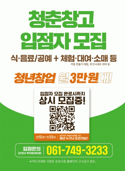 [¹Ìµð¾îÀü³² ÀÓ¼º¿Ï ±âÀÚ] ¼øÃµ½Ã´Â û³ââ¾÷ 1¹øÁö ¡®Ã»Ãáâ°í¡¯ÀÇ ÀÏ¿øÀÌ µÉ ÀÔÁ¡ÀÚ¸¦ ¿À´Â 31ÀϱîÁö ¸ðÁýÇÑ´Ù. ¸ðÁý ´ë»óÀº ½Ä¡¤À½·á, °ø¿¹¡¤Ã¼Çè µî ´Ù¾çÇÑ ºÐ¾ß¿¡ ÀڽŸ¸ÀÇ ¾ÆÀÌÅÛÀ» °®°í â¾÷ÇϰíÀÚ ÇÏ´Â ´ëÇѹα¹ û³âÀ̶ó¸é ´©±¸¡¦