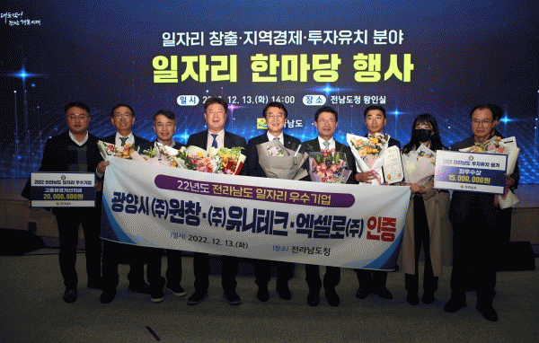 [¹Ìµð¾îÀü³² ÀÓ¼º¿Ï ±âÀÚ] ±¤¾ç½Ã´Â Áö³ 13ÀÏ Àü³²µµÃ» ¿ÕÀνǿ¡¼ ¿¸° ¡®2022³â Àü¶ó³²µµ ÀÏÀÚ¸® ÇѸ¶´ç Çà»ç¡¯¿¡¼ ¢ß¿øÃ¢, ¢ßÀ¯´ÏÅ×Å©, ¿¢¼¿·Î µî 3°³ Áö¿ª¾÷ü°¡ Àü¶ó³²µµ ÀÏÀÚ¸® ¿ì¼ö±â¾÷ ÀÎÁõ¼¿Í ÀÎÁõÆÐ¸¦ ¼ö»óÇß´Ù°í ¹àÇû´Ù. ¡¦