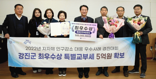 [¹Ìµð¾îÀü³² Á¦°¥´ëÁ¾ ±âÀÚ] Àü¶ó³²µµ´Â ÇàÁ¤¾ÈÀüºÎÀÇ ¡®2022³â Áö¹æÀÚÄ¡´Üü Àα¸°¨¼Ò ´ëÀÀ ¿ì¼ö»ç·Ê °æÁø´ëȸ¡¯¼ ÃÖ¿ì¼ö»óÀ» ¼ö»óÇØ ±â°üǥâ°ú ÇÔ²² Ưº°±³ºÎ¼¼ 5¾ï¿øÀ» ¹Þ°Ô µÆ´Ù°í ¹àÇû´Ù. Àü³²µµ´Â °æÁø´ëȸ¿¡¼ ¡®Ã»³âÀÌ¿© µ¹¾Æ¡¦