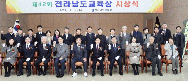 [¹Ìµð¾îÀü³² Á¦°¥´ëÁ¾ ±âÀÚ] Àü¶ó³²µµ±³À°Ã»ÀÌ 12¿ù 14ÀÏ Ã»»ç 2Ãþ ´ëȸÀǽǿ¡¼ Á¦42ȸ Àü¶ó³²µµ±³À°»ó ½Ã»ó½ÄÀ» °®°í 5¸íÀÇ ¼ö»óÀÚ¿¡°Ô ǥâÀå°ú ºÎ»óÀ» ¼ö¿©Çß´Ù. Àü¶ó³²µµ±³À°»óÀº ¡®Àü¶ó³²µµ±³À°°¨ ǥ⠵ °üÇÑ Á¶·Ê¡¯¿¡ µû¶ó ¡¦