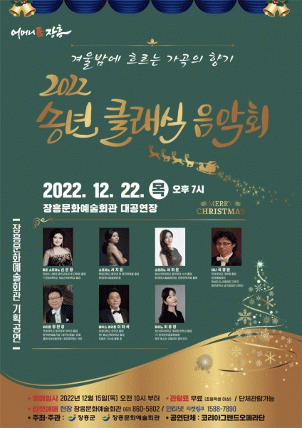 [¹Ìµð¾îÀü³² Á¦°¥´ëÁ¾ ±âÀÚ] ÀåÈﱺÀº 12¿ù 22ÀÏ ¿ÀÈÄ7½Ã ÀåÈ﹮ȿ¹¼úȸ°ü¿¡¼ °Ü¿ï¹ã¿¡ È帣´Â °¡°îÀÇ Çâ±â ¡®2022 ¼Û³â Ŭ·¡½ÄÀ½¾Çȸ¡¯ °ø¿¬À» °³ÃÖÇÑ´Ù°í ¹àÇû´Ù. 100ºÐ µ¿¾È ÁøÇàÇÏ´Â À̹ø °ø¿¬Àº 2022³â ÇÑ ÇØ¸¦ ¸¶¹«¸®ÇÏ´Â À§·Î¿Í¡¦