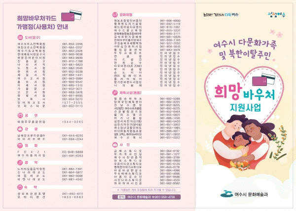 [¹Ìµð¾îÀü³² ÀüÇü¼º ±âÀÚ] ¿©¼ö½Ã°¡ Àü±¹ ÃÖÃÊ·Î Á¶·Ê¸¦ Á¦Á¤ÇØ ´Ù¹®È°¡Á·°ú ºÏÇÑÀÌÅ»Áֹο¡°Ô Áö¿øÇÑ ¡®Èñ¸Á¹Ù¿ìó Ä«µå¡¯ »ç¿ë ±â°£ÀÌ ¿À´Â 15ÀÏ Á¾·áµÈ´Ù¸ç ±âÇÑ ³» »ç¿ëÀ» ´çºÎÇß´Ù. ¡®Èñ¸Á¹Ù¿ìó Ä«µå¡¯´Â ¿¬°£ 8¸¸¿ø »ó´çÀÇ Æ÷ÀΡ¦