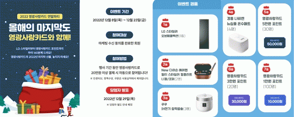 [¹Ìµð¾îÀü³² Á¦°¥´ëÁ¾ ±âÀÚ] ¿µ±¤±ºÀº ¿¬¸» ¿¬½Ã ħüµÈ °æ±â ȸº¹ ¹× dz¿ä·Î¿î ¿¬¸»À» À§ÇØ ¿µ±¤»ç¶ûÄ«µå ¿¬¸» ±º¹Î °¨»ç À̺¥Æ®¸¦ ½Ç½ÃÇÑ´Ù°í ¹àÇû´Ù. ¿µ±¤»ç¶ûÄ«µå ¿î¿µ ´ëÇà¾÷üÀÎ ÄÚ³ª¾ÆÀÌ ÁÖ°üÀ¸·Î ÁøÇàµÇ´Â À̺¥Æ®´Â 12¿ù 8ÀϺΡ¦