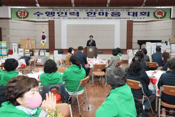 [¹Ìµð¾îÀü³² Á¦°¥´ëÁ¾ ±âÀÚ] ÀåÈﱺ ³ëÀθÂÃãµ¹º½¼ºñ½º Á¾»çÀÚ ÇѸ¶À½´ëȸ°¡ 5ÀÏ °³ÃֵƴÙ. À̳¯ Çà»ç´Â Äڷγª19·Î ¸ðµÎ°¡ Èûµç ½Ã±âÀÓ¿¡µµ ºÒ±¸Çϰí ÇöÀå¿¡¼ µ¹º½¼ºñ½º Á¦°øÀ» À§ÇØ ¾Ö¾´ Á¾»çÀÚµéÀ» °Ý·ÁÇϰí Á¾»çÀÚ°£ÀÇ ÈÇÕ ¹× ¼Ò¡¦
