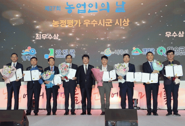 [¹Ìµð¾îÀü³² Á¦°¥´ëÁ¾ ±âÀÚ] Á¦27ȸ Àü¶ó³²µµ ³ó¾÷ÀÎÀÇ ³¯ Çà»ç°¡ 11ÀÏÀ» ÀåÈﱺ ½Ç³»Ã¼À°°ü¿¡¼ ¿·È´Ù. Àü³²³ó¾÷ÀδÜüÇùÀÇȸ°¡ ÁÖ°üÇÑ À̳¯ Çà»ç´Â ¹Úâȯ Àü³² Á¤¹«ºÎÁö»ç, À±Àç°© ±¹È¸ÀÇ¿ø, ±è¼º ÀåÈﱺ¼ö¸¦ ºñ·ÔÇÑ ³ó¾÷ÀÎ 500¿©¡¦