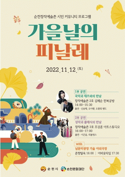 [¹Ìµð¾îÀü³² ÀÓ¼º¿Ï ±âÀÚ] ¼øÃµ½Ã°¡ ÁÖÃÖÇÏ°í ¼øÃµ¹®ÈÀç´ÜÀÌ ÁÖ°üÇÏ´Â ¡®°¡À»³¯ÀÇ Çdz¯·¹¡¯¹®È °ø¿¬ÀÌ ¿À´Â 12ÀÏ ¿ÀÈÄ 2½Ã¿¡ âÀÛ¿¹¼úÃÌ 2È£ ±èÇý¼ø ÇѺ¹°ø¹æ ¸¶´ç¿¡¼ ¿¸°´Ù. À̹ø °ø¿¬Àº ½Å½ÂÅÂ¿Í ¿À¾Æ·£ ±×¸®°í ¿ÀȯÈñ ¹êµå°¡ Ã⿬¡¦