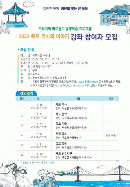 [¹Ìµð¾îÀü³² °í±Ô¼® ±âÀÚ] ¸ñÆ÷½Ã°¡ ¿ì¸®Áö¿ª ¹Ù·Î¾Ë±â Æò»ýÇнÀ ÇÁ·Î±×·¥À¸·Î ¡®¸ñÆ÷ ¿ª»ç¿Í À̾߱⡯ °Á¸¦ °³ÃÖÇÑ´Ù. À̹ø °Á´ Áö¿ª Àü¹®°¡µéÀÇ ´Ù¾çÇÑ °ÀǸ¦ ÅëÇØ ¸ñÆ÷ÀÇ ¿ª»ç¿Í ¹®È, ¿¹¼ú µîÀ» ü°èÀûÀ¸·Î ¹è¿ï ¼ö ÀÖ´Â ±³À°¡¦