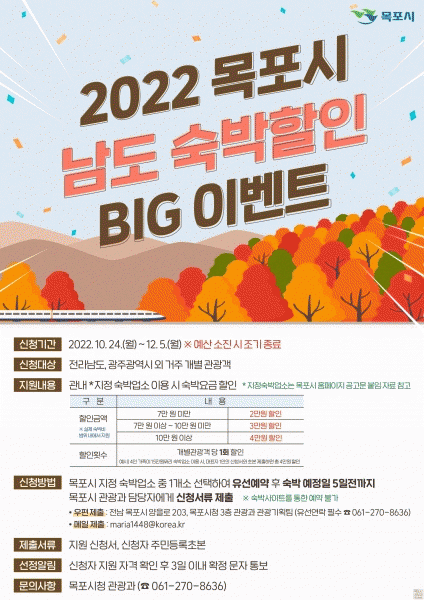 [¹Ìµð¾îÀü³² °í±Ô¼® ±âÀÚ] ¡®2022~2023 Àü¶ó³²µµ ¹æ¹®ÀÇ ÇØ¡¯¸¦ ¸Â¾Æ ¸ñÆ÷½Ã°¡ ¡®³²µµ ¼÷¹ÚÇÒÀÎ BIG À̺¥Æ®¡¯¸¦ ½Ç½ÃÇÑ´Ù. À̹ø À̺¥Æ®´Â ±¤ÁÖ¡¤Àü³² ¿Ü ÁÖ¼ÒÁö¸¦ µÐ °ÅÁÖ °³º° °ü±¤°´¿¡°Ô ¼÷¹Ú¿ä±Ý ÇÒÀÎ ÇýÅÃÀ» Á¦°øÇÏ´Â Çà»ç·Î °ü±¤°´¡¦