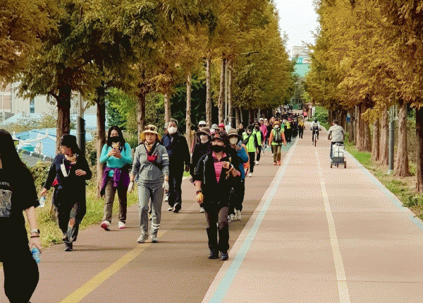[¹Ìµð¾îÀü³² ÀüÇü¼º ±âÀÚ] ¿©¼ö½Ã°¡ 10¿ù ºñ¸¸¿¹¹æÀÇ ´ÞÀ» ¸Â¾Æ Áö³ 22ÀÏ ÁøÇàÇÑ ¡®°È±âÁÁÀº±æ ÇÔ²²°É¾î¿ä¡¯ Çà»ç¿¡ ½Ã¹Î 500¿©¸íÀÌ Âü°¡ÇØ °¡À»»êÃ¥À» ÇÔ²² Áñ°å´Ù°í ¹àÇû´Ù. À̳¯ Çà»ç¿¡ Âü°¡ÇÑ ½Ã¹ÎµéÀº ¿©¼ö½Ã ¹ÌÆò¿ª¿¡¼ Ãâ¹ßÇØ ¿À¡¦