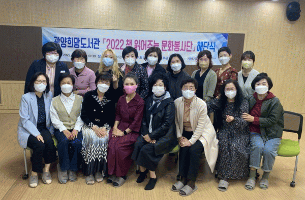 [¹Ìµð¾îÀü³² ÀÓ¼º¿Ï ±âÀÚ] ±¤¾çÈñ¸Áµµ¼°ü¿¡¼´Â Áö³ 20ÀÏ ¡®2022 Ã¥ ÀоîÁÖ´Â ¹®ÈºÀ»ç´Ü¡¯ ÇØ´Ü½ÄÀ» Çß´Ù. ¡®Ã¥ ÀоîÁÖ´Â ¹®ÈºÀ»ç´Ü¡¯Àº ¹®ÈüÀ°°ü±¤ºÎ°¡ ÁÖÃÖÇϰí Çѱ¹ÃâÆÇ¹®È»ê¾÷ÁøÈï¿øÀÌ ÁÖ°üÇÏ´Â »ç¾÷À¸·Î 50¼¼ ÀÌ»ó ÀÚ¿øÈ°µ¿¡¦