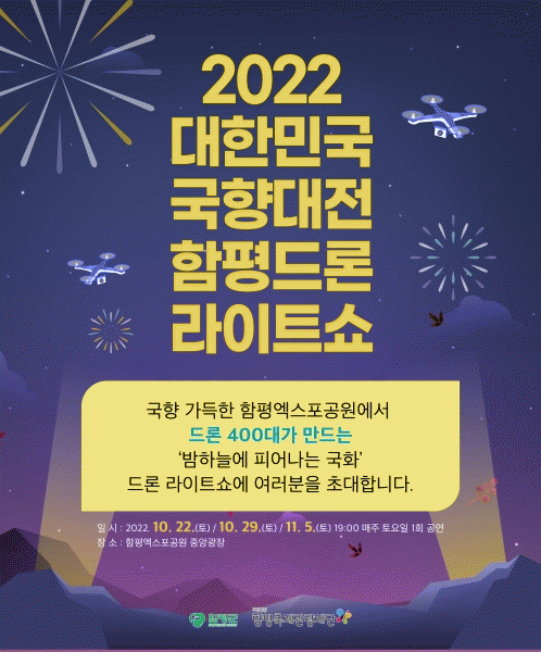 [¹Ìµð¾îÀü³² Á¦°¥´ëÁ¾ ±âÀÚ] ÇÔÆòÀÇ °¡À» ÇÏ´ÃÀÌ ³·¿¡´Â ¸¸°³ÇÑ ±¹ÈÇâ±â·Î ¹ã¿¡´Â È·ÁÇÑ µå·Ð ºûÀ¸·Î ¹°µç´Ù. ÇÔÆò±ºÀº ¡°¿À´Â 21ÀÏ °³¸·ÇÏ´Â 2022 ´ëÇѹα¹ ±¹Çâ´ëÀü¿¡¼ ¡®ÇÔÆòµå·Ð ¶óÀÌÆ®¼î¡¯¸¦ °³ÃÖÇÑ´Ù¡±°í 20ÀÏ ¹àÇû´Ù. µå·Ð¡¦