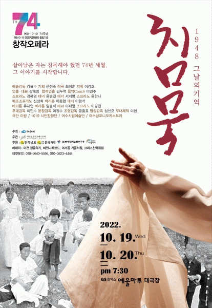 [¹Ìµð¾îÀü³² ÀüÇü¼º ±âÀÚ] ¿©¼ø»ç°Ç 74³âÀÇ À̾߱⸦ ´ãÀº âÀÛ¿ÀÆä¶ó ¡®1948³â ħ¹¬¡¯ÀÌ ¿À´Â 10¿ù 19Àϰú 20ÀÏ GSĮŨ½º ¿¹¿ï¸¶·ç ´ë±ØÀå¿¡¼ ¸·À» ¿Ã¸°´Ù. ¿©¼ö½Ã°¡ ÁÖÃÖÇÏ°í ¿©¼ö½ÉÆ÷´Ï¿ÀÄɽºÆ®¶ó°¡ ÁÖ°üÇÏ´Â À̹ø °ø¿¬Àº Áö³ 2018¡¦