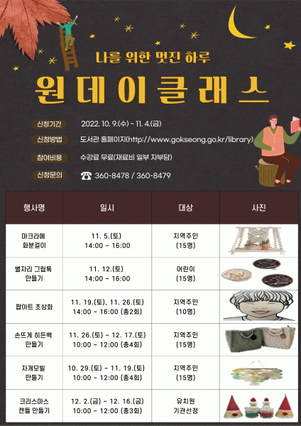 [¹Ìµð¾îÀü³² Á¦°¥´ëÁ¾ ±âÀÚ] °î¼º±ºÀÌ ¿À´Â 11¿ùºÎÅÍ ¿Á°ú°ø°øµµ¼°ü¿¡¼ ¡®³ª¸¦ À§ÇÑ ¸ÚÁø ÇϷ硯¸¦ ÁÖÁ¦·Î ¿øµ¥ÀÌŬ·¡½º¸¦ ¿î¿µÇÑ´Ù. °î¼º±ºÀº ÁֹεéÀÇ ´Ù¾çÇÑ ¿å±¸¸¦ ¹Ý¿µÇϱâ À§ÇØ À̹ø ¿øµ¥ÀÌŬ·¡½º¿¡ ´Ù¾çÇÑ °Á¸¦ ¸¶·ÃÇß´Ù. ¡¦