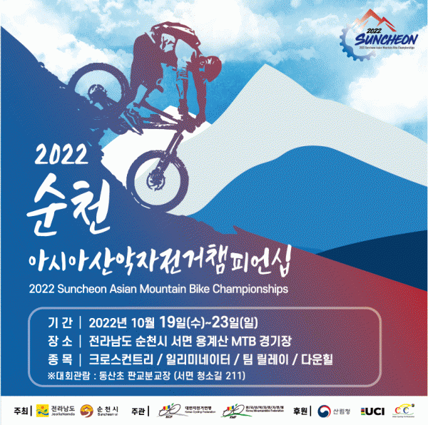 [¹Ìµð¾îÀü³² ÀÓ¼º¿Ï ±âÀÚ] ¼øÃµ½Ã´Â ¡®2022 ¼øÃµ ¾Æ½Ã¾Æ »ê¾ÇÀÚÀü°Å èÇǾð½Ê¡¯ÀÌ ¿À´Â 19ÀϺÎÅÍ 23ÀϱîÁö Àü³² ¼øÃµ½Ã ¿ë°è»ê MTB °æ±âÀå¿¡¼ ¿¸°´Ù°í ¹àÇû´Ù. ¼øÃµ½Ã¿Í Àü¶ó³²µµ°¡ °øµ¿ÁÖÃÖÇÏ°í ´ëÇÑÀÚÀü°Å¿¬¸Í, Çѱ¹»ê¾ÇÀÚÀü°Å¿¬¸Í¡¦