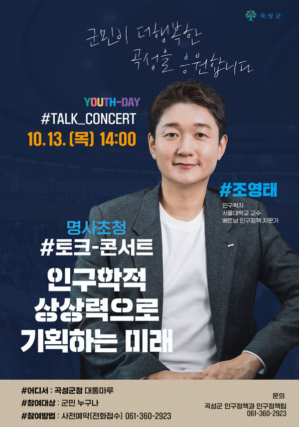 [¹Ìµð¾îÀü³² Á¦°¥´ëÁ¾ ±âÀÚ] °î¼º±ºÀÌ ¿À´Â 10¿ù 13ÀÏ ¿ÀÈÄ 2½Ã °î¼º±ºÃ» º»°ü 2Ãþ ´ëÅ븶·ç¿¡¼ ±º¹Î 300¿©¸íÀ» ´ë»óÀ¸·Î Á¦2ȸ ¸í»ç ÃÊû ÅäÅ©ÄܼƮ¸¦ °³ÃÖÇÑ´Ù°í ¹àÇû´Ù. À̹ø ÅäÅ©ÄܼƮ¿¡´Â Á¶¿µÅ ¼¿ï´ëÇб³ Àα¸Á¤Ã¥ ¿¬±¸ ¼¾ÅÍ¡¦