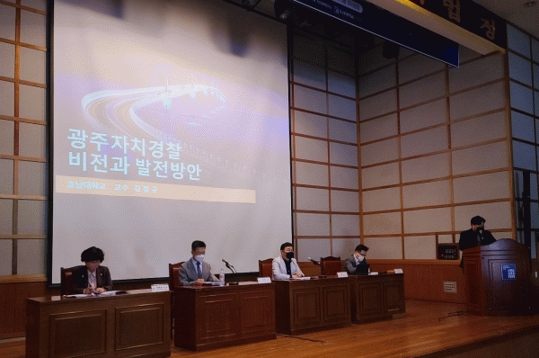 [¹Ìµð¾îÀü³² Á¦°¥´ëÁ¾ ±âÀÚ] ±¤ÁÖ±¤¿ª½Ã ÀÚÄ¡°æÂûÀ§¿øÈ¸´Â 21ÀÏ Á¶¼±´ëÇб³ ¹ý°ú´ëÇÐ ³» ¸ðÀǹýÁ¤¿¡¼ ¡®±¤ÁÖÀÚÄ¡°æÂûÀÇ ºñÀü°ú ¹ßÀü¹æ¾È¡¯ ¼¼¹Ì³ª¸¦ ¿°í Åä·ÐÀ» ÆîÃÆ´Ù. À̳¯ ¼¼¹Ì³ª´Â Çѱ¹°ø¾ÈÇàÁ¤ÇÐȸ, °æÂû´ëÇÐ ÀÚÄ¡°æÂû¹ßÀü¿¬±¸¿ø¡¦