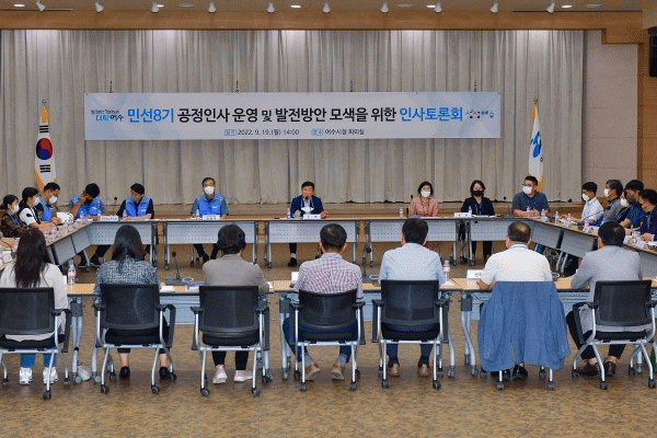 [¹Ìµð¾îÀü³² ÀüÇü¼º ±âÀÚ] ¿©¼ö½Ã´Â ¹Î¼±8±â °øÁ¤ÀÎ»ç ¿î¿µ ¹× ¹ßÀü¹æ¾È ¸ð»öÀ» À§ÇÑ Á÷·Äº° ´ëÇ¥ÀÚ ÀλçÅä·Ðȸ¸¦ Áö³ 19ÀÏ ¿ÀÈÄ ½Ãû ȸÀǽǿ¡¼ °³ÃÖÇß´Ù°í ¹àÇû´Ù. Á¤±â¸í ½ÃÀåÀÌ Á÷Á¢ ÁÖÀçÇÑ À̳¯ Åä·Ðȸ¿¡´Â ÇàÁ¤Á÷ µî 26°³ Á÷·Ä ¡¦
