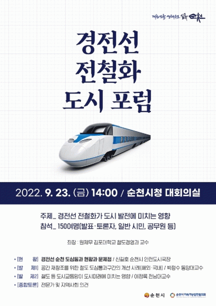 [¹Ìµð¾îÀü³² ÀÓ¼º¿Ï ±âÀÚ] ¼øÃµ½Ã´Â ¿À´Â 23ÀÏ ¿ÀÈÄ 2½Ã ¼øÃµ½Ãû ´ëȸÀǽǿ¡¼ ¡®°æÀü¼± ÀüÃ¶È µµ½Ã Æ÷·³¡¯À» °³ÃÖÇÑ´Ù. ¼øÃµ½Ã¿Í ¼øÃµÁö¼Ó°¡´É¹ßÀüÇùÀÇȸ¿¡¼ °øµ¿ °³ÃÖÇÏ´Â Æ÷·³Àº ¡°°æÀü¼± ÀüöȰ¡ µµ½Ã ¹ßÀü¿¡ ¹ÌÄ¡´Â ¿µÇ⡱À» ÁÖ¡¦