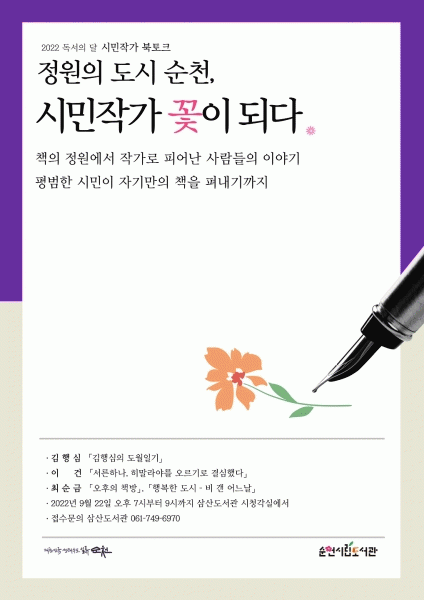 [¹Ìµð¾îÀü³² ÀÓ¼º¿Ï ±âÀÚ] ¼øÃµ½Ã´Â ¿À´Â 22ÀÏ ¼øÃµ½Ã¸³»ï»êµµ¼°ü¿¡¼ ½Ã¹ÎÀÛ°¡ ºÏÅäÅ© ¡®Á¤¿øÀÇ µµ½Ã ¼øÃµ, ½Ã¹ÎÀÛ°¡ ²ÉÀÌ µÇ´Ù¡¯¸¦ ÁøÇàÇÑ´Ù. ¼øÃµ½Ã¸³µµ¼°üÀº Áö³ÇغÎÅÍ ¡®1ÀÎ 1Ã¥ ¾²±â¡¯½Ã¹Î¿îµ¿À» ÆîÃÄ Àü¾÷ ÀÛ°¡´Â ¾Æ´ÏÁö¸¸ ´Ù¡¦