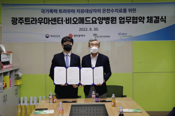 [¹Ìµð¾îÀü³² Á¦°¥´ëÁ¾ ±âÀÚ] ±¤ÁÖÆ®¶ó¿ì¸¶¼¾ÅÍ´Â 30ÀÏ È¼ø ºñ¿À¸Þµå¿ä¾çº´¿ø°ú ¡®±¹°¡Æø·Â Æ®¶ó¿ì¸¶ Ä¡À¯ ´ë»óÀÚÀÇ ¿Âõ¼öÄ¡·á ÇÁ·Î±×·¥ ÀÌ¿ëÀ» À§ÇÑ ¾÷¹«Çù¾à¡¯À» ü°áÇß´Ù. À̳¯ ±¤ÁÖÆ®¶ó¿ì¸¶¼¾ÅÍ È¸Àǽǿ¡¼ ¿¸° Çù¾à½Ä¿¡´Â ±è¸í±Ç¡¦