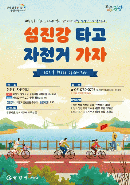 [¹Ìµð¾îÀü³² ÀÓ¼º¿Ï ±âÀÚ] ±¤¾ç½Ã´Â ¿À´Â 9¿ù 17ÀÏ ¿ÀÀü ¼¶Áø°º¯ ÀÚÀü°Åµµ·Î ÀÏ¿ø¿¡¼ ¡®¼¶Áø° Æ¯È ÀÚÀü°Å ¶óÀ̵ù Çà»ç¡¯¸¦ °³ÃÖÇÑ´Ù. ÇàÁ¤¾ÈÀüºÎ°¡ ¼±Á¤ÇÑ ¡®Çѱ¹ÀÇ ¾Æ¸§´Ù¿î ÀÚÀü°Å±æ 100¼±¡¯¿¡ ¼±Á¤µÈ ¼¶Áø° ÀÚÀü°Å±æÀ» Ȱ¿ëÇØ °¡¡¦