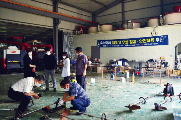 [¹Ìµð¾îÀü³² Á¦°¥´ëÁ¾ ±âÀÚ] ±¤ÁÖ±¤¿ª½Ã ³ó¾÷±â¼ú¼¾ÅͰ¡ ¡®Ãß¼®¸ÂÀÌ ¿¹Ãʱ⠹«»óÁ¡°Ë ¹× ¾ÈÀü±³À°¡¯À» ½Ç½ÃÇß´Ù. ³ó¾÷±â¼ú¼¾ÅÍ´Â Áö³ 16ÀϺÎÅÍ 25ÀϱîÁö ÃÑ 4ȸ¿¡ °ÉÃÄ ½Ã¹Î 132¸íÀ» ´ë»óÀ¸·Î ¿¹Ãʱ⠹«»óÁ¡°Ë ¹× ÀÌ»ó ºÎǰ ±³Ã¼¸¦ Áø¡¦