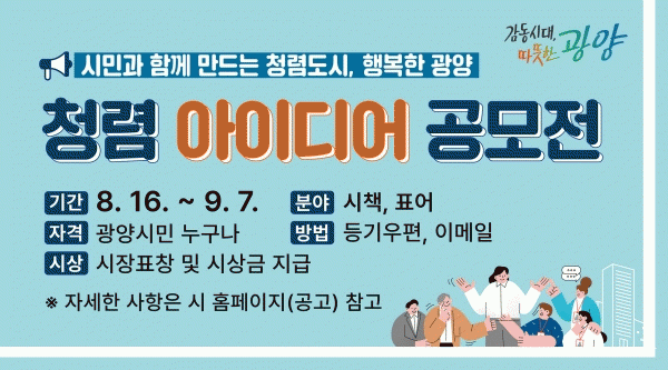 [¹Ìµð¾îÀü³² ÀÓ¼º¿Ï ±âÀÚ] ±¤¾ç½Ã´Â û·Å¿¡ ´ëÇÑ °ü½É°ú Âü¿©¸¦ ³ôÀ̰í ÇÔ²² ¸¸µå´Â û·ÅÇÑ °øÁ÷¹®È Á¶¼ºÀ» À§ÇØ ½Ã¹ÎÀ» ´ë»óÀ¸·Î ¿À´Â 9¿ù 7ÀϱîÁö ¡®Ã»·Å ¾ÆÀ̵ð¾î °ø¸ðÀü¡¯À» °³ÃÖÇÑ´Ù. ½Ã´Â ¡®½Ã¹Î°ú ÇÔ²² ¸¸µå´Â û·Åµµ½Ã, ÇູÇÑ¡¦