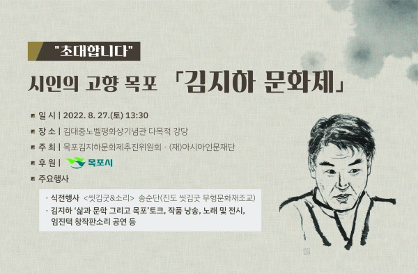 [¹Ìµð¾îÀü³² °í±Ô¼® ±âÀÚ] °í ±èÁöÇÏ ½ÃÀÎÀÇ º°¼¼ 100ÀÏÀÌ Áö³ °¡¿îµ¥ ¸ñÆ÷±èÁöÇϹ®ÈÁ¦ÃßÁøÀ§¿øÈ¸, ¾Æ½Ã¾ÆÀι®Àç´ÜÀÌ °øµ¿ ÁÖÃÖÇÏ´Â ¡®±èÁöÇÏ ¹®ÈÁ¦¡¯°¡ ¿À´Â 27ÀÏ ¿ÀÈÄ 1½Ã30ºÐ »ïÇеµ ±è´ëÁ߳뺧ÆòÈ»ó±â³ä°ü ´Ù¸ñÀû°´ç¿¡¼ °³Ãֵȡ¦