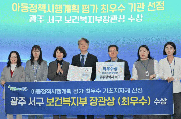 [¹Ìµð¾îÀü³² Á¦°¥´ëÁ¾ ±âÀÚ]±¤ÁÖ±¤¿ª½Ã ¼±¸°¡ ÃßÁøÇÑ ¾Æµ¿Ä£È»ç¾÷ÀÌ Àü±¹ÀûÀ¸·Î ÁÖ¸ñÀ» ¹Þ¾Ò´Ù. ¼±¸´Â º¸°Çº¹ÁöºÎ°¡ ÁÖ°üÇÑ ¡®¾Æµ¿Á¤Ã¥½ÃÇà °èȹ ÃßÁø½ÇÀû Æò°¡¡¯¿¡¼ Àü±¹ ÃÖ¿ì¼ö ÁöÀÚü·Î ¼±Á¤µÅ º¸°Çº¹ÁöºÎ Àå°ü»óÀ» ¼ö»óÇß´Ù. ¡¦