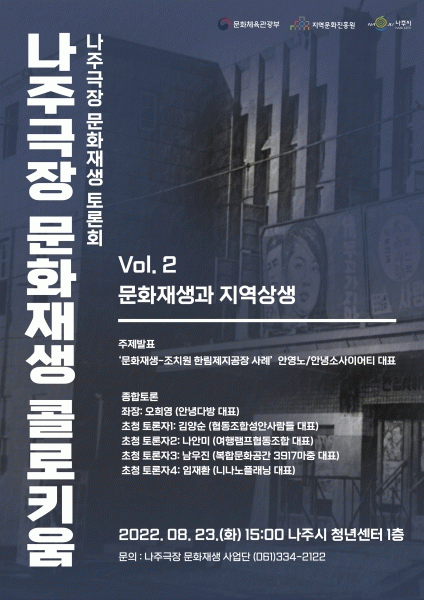 [¹Ìµð¾îÀü³² ¹Úº¹»ê ±âÀÚ] Àü¶ó³²µµ ³ªÁֽð¡ ¿¾ ³ªÁÖ±ØÀå ¹®ÈÀç»ý»ç¾÷ÀÇ ¼º°øÀû ÃßÁøÀ» À§ÇÑ µÎ ¹øÂ° Æ÷·³ ÀÚ¸®¸¦ °®´Â´Ù. ³ªÁֽô 23ÀÏ ¿ÀÈÄ 3½ÃºÎÅÍ ³ªÁֽà û³â¼¾ÅÍ¿¡¼ ¡®³ªÁÖ±ØÀå ¹®ÈÀç»ý ÄÝ·ÎŰ¿ò : Vol.2 ¹®ÈÀç»ý°ú Áö¿ª»ó¡¦