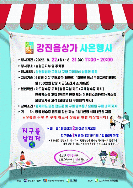 [¹Ìµð¾îÀü³² Á¦°¥´ëÁ¾ ±âÀÚ] °Áø±º¹®È°ü±¤Àç´ÜÀÌ 8¿ù 22ÀϺÎÅÍ 31ÀϱîÁö ÃÑ 10ÀÏ µ¿¾È ³óÇùÀºÇà ±ºÁöºÎ ¿· ÁÖÂ÷Àå¿¡¼ Äڷγª19·Î ÀÎÇÑ ¼Òºñ À§Ãà¿¡ µû¸¥ Ãæ°ÝÀ» ÃÖ¼ÒÈÇϰí Áö¿ª°æÁ¦ Ȱ¼ºÈ¸¦ À§ÇØ ¡®2022 Ãß¼®¸ÂÀÌ °ÁøÀ¾»ó°¡ »çÀºÇࡦ