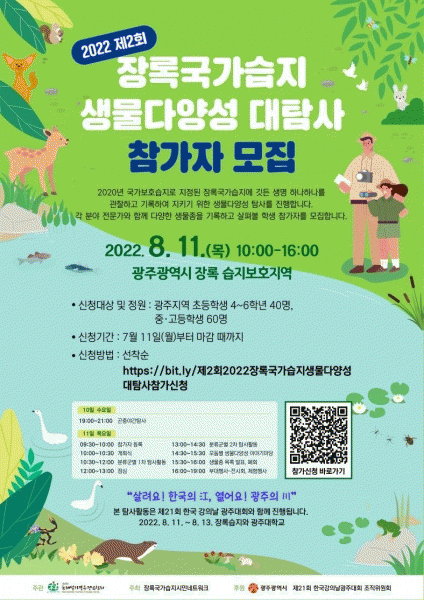 [¹Ìµð¾îÀü³² Á¦°¥´ëÁ¾ ±âÀÚ] ±¤ÁÖ±¤¿ª½Ã´Â µµ½É ¼Ó ù ±¹°¡½ÀÁöÀÎ Àå·Ï½ÀÁö¿¡¼ 10ÀϺÎÅÍ ÀÌÆ²°£ ¡®Á¦2ȸ 2022 Àå·Ï±¹°¡½ÀÁö »ý¹°´Ù¾ç¼º ´ëŽ»ç¡¯¸¦ °³ÃÖÇÑ´Ù. »ý¹°´Ù¾ç¼º Ž»ç´Â Çлý Âü°¡ÀÚµéÀÌ »ýÅ Àü¹®°¡¿Í ÇÔ²² ¿ì¸® Áö¿ª¿¡ ¼½ÄÇÏ¡¦