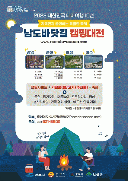 [¹Ìµð¾îÀü³² ÀüÇü¼º ±âÀÚ] ¿©¼ö½Ã »ýŰü±¤Áö ³¶µµ¿¡¼ ¡®³²µµ¹Ù´å±æ Ä·ÇδëÀü¡¯ÀÌ ¿¸°´Ù. ´ëÇѹα¹ Å׸¶¿©Çà 10¼± Áß 6±Ç¿ª ÇÁ·Î±×·¥À¸·Î ³²µµÀÇ ¾Æ¸§´Ù¿î °ü±¤ÀÚ¿øÀ» È«º¸Çϰí Ä·Çι®È¸¦ °³¼±Çϱâ À§ÇØ ±âȹµÆ´Ù. 8¿ùºÎÅÍ 11¿ù±îÁö¡¦