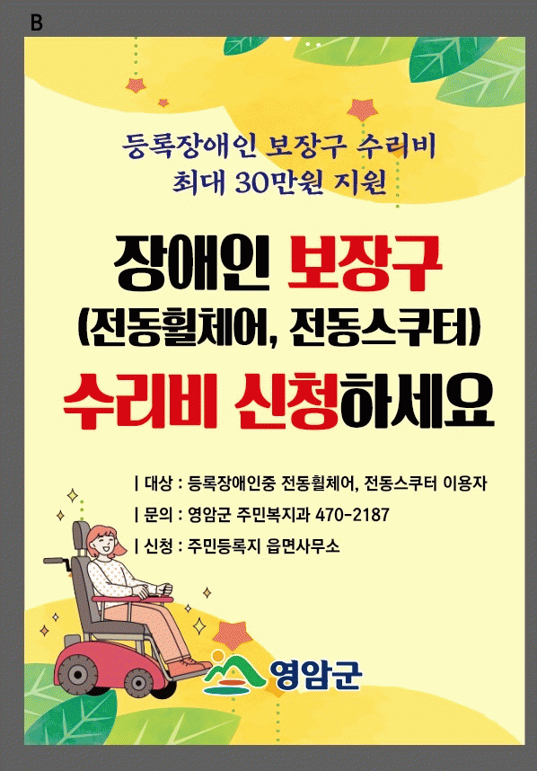 [¹Ìµð¾îÀü³² ±è±âö ±âÀÚ] ¿µ¾Ï±ºÀÌ Àå¾ÖÀÎ Áö¿ø½ÃÃ¥À¸·Î Àå¾ÖÀκ¸À屸 ¼ö¸®ºñ Áö¿ø»ç¾÷À» ÃßÁøÇÑ´Ù. ÀÌ »ç¾÷Àº Àå¾ÖÀÎÀÇ ÀÏ»ó»ýȰ Áß À̵¿ÀÇ ºÒÆíÇÔÀ» ÁÙÀÌ°í »çȸȰµ¿¿¡ Å« µµ¿òÀ» ÁÖ´Â Àüµ¿ÈÙü¾î¡¤Àüµ¿½ºÄíÅÍÀÇ ¸ðÅÍ, ŸÀÌ¾î µî ºÎ¡¦