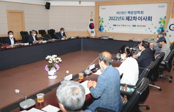 [¹Ìµð¾îÀü³² ÀÓ¼º¿Ï ±âÀÚ] Àç´Ü¹ýÀÎ ¹é¿îÀåÇÐȸ´Â Áö³ 26ÀÏ ±¤¾ç½Ãû »óȲ½Ç¿¡¼ 2022³âµµ Á¦2Â÷ ÀÌ»çȸ¸¦ °³ÃÖÇß´Ù. À̹ø ÀÌ»çȸ´Â Á¤ÀÎÈ ±¤¾ç½ÃÀå µî 12¸íÀÇ ÀÌ»ç¿Í 2¸íÀÇ °¨»ç°¡ Âü¼®ÇÑ °¡¿îµ¥ 2022³â ¹é¿îÀåÇÐȸ ÀÌ»çÀå°ú ÀÌ»ç ¼±¡¦