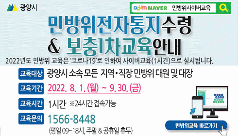 [¹Ìµð¾îÀü³² ÀÓ¼º¿Ï ±âÀÚ] ±¤¾ç½Ã´Â ¿ÃÇØ ¹Î¹æÀ§ ±³À°À» Äڷγª19 »óȲ¿¡ ¸ÂÃç »çÀ̹ö±³À°À¸·Î ÁøÇàÇϰí ÀÖÀ¸¸ç ¿À´Â 8¿ù 1ÀÏ~9¿ù 30ÀÏ »ó¹Ý±â ¹Î¹æÀ§±³À° ¹ÌÀ̼ö ´ë¿øÀ» ´ë»óÀ¸·Î »çÀ̹ö±³À°À» ½Ç½ÃÇÒ ¿¹Á¤ÀÌ´Ù. À̹ø¿¡ ½Ç½ÃÇÏ´Â ¹Î¹æ¡¦