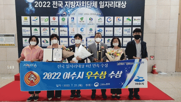 [¹Ìµð¾îÀü³² ÀüÇü¼º ±âÀÚ] ¿©¼ö½Ã°¡ °í¿ë³ëµ¿ºÎ°¡ ÁÖ°üÇÑ ¡®2022³â Àü±¹ Áö¹æÀÚÄ¡´Üü ÀÏÀÚ¸®´ë»ó¡¯¿¡¼ ¿ì¼ö»óÀ» ¼ö»óÇß´Ù°í 22ÀÏ ¹àÇû´Ù. 2019³â°ú 2020³â ÃÖ¿ì¼ö»ó, 2021³â ¿ì¼ö»óÀ» ¼ö»óÇѵ¥ À̾î 4³â ¿¬¼Ó ÀÏÀÚ¸®´ë»ó ¼ö»óÀ¸·Î ¿©¼ö¡¦