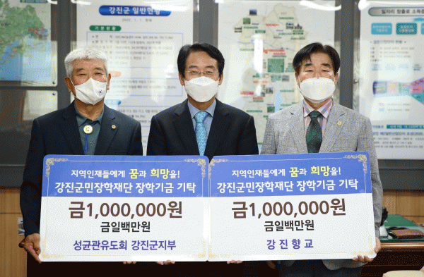[¹Ìµð¾îÀü³² Á¦°¥´ëÁ¾ ±âÀÚ] Áö³ 20ÀÏ °ÁøÇâ±³¿Í ¼º±Õ°ü À¯µµÈ¸ °Áø±ºÁöºÎ°¡ °¢ 100¸¸¿øÀÇ ÀåÇбÝÀ» °Áø±º¹ÎÀåÇÐÀç´Ü¿¡ ±âŹÇß´Ù. °ÁøÇâ±³ ¹× ¼º±Õ°ü À¯µµÈ¸ °Áø±ºÁöºÎ´Â 2005³âºÎÅÍ °¢ 450¸¸¿øÀÇ ÀåÇбÝÀ» °Áø±º¹ÎÀåÇÐÀç´Ü¿¡ ±â¡¦