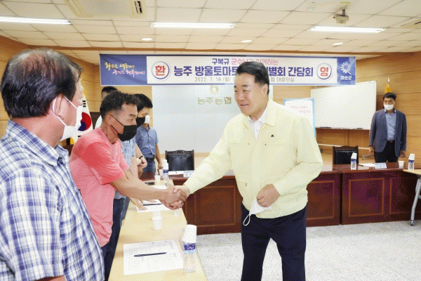 [¹Ìµð¾îÀü³² Á¦°¥´ëÁ¾ ±âÀÚ] ±¸º¹±Ô ȼø±º¼ö°¡ Áö³ 18ÀÏ ´ÉÁÖ³óÇù¿¡¼ ´ÉÁÖ ¹æ¿ïÅ丶Åä °øµ¿¼±º°È¸ ȸ¿ø ³ó°¡ 20¿©¸íÀÌ Âü¼®ÇÑ °¡¿îµ¥ ¡®»ç¶û¹æ Á´ãȸ¡¯¸¦ ¿¾ú´Ù. ±¸ ±º¼ö´Â À̳¯ ´ÉÁÖ ¹æ¿ïÅ丶Åä °ø¼±È¸ÀÇ ¿î¿µ ÇöȲ, ÇâÈÄ °èȹ µî¡¦