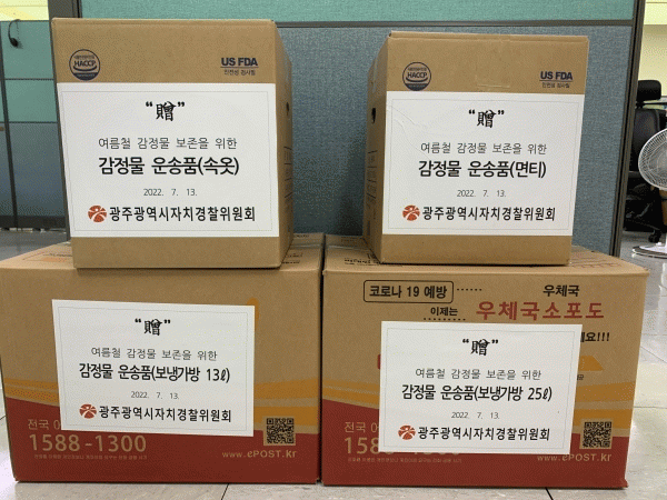 [¹Ìµð¾îÀü³² Á¦°¥´ëÁ¾ ±âÀÚ] ±¤ÁÖ±¤¿ª½Ã ÀÚÄ¡°æÂûÀ§¿øÈ¸´Â ¹üÁËÇöÀå¿¡¼ äÃëÇÑ °¨Á¤¹°ÀÇ º¯ÁúÀ» ¹æÁöÇÏ°í¼º¹üÁË ÇÇÇØÀÚ¸¦ º¸È£Çϱâ À§ÇØ º¸³Ã°¡¹æ°ú ´ëüÀÇ·ù¸¦ Á¦ÀÛÇØ ±¤ÁÖ°æÂûû°ú °ü³» °æÂû¼¿¡ Áö¿øÇß´Ù. À̹ø Áö¿øÀº ±¤ÁÖ°æÂûû ¿ä¡¦